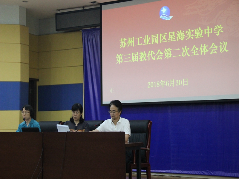 2018年6月30日,星海实验中学召开第三届教代会第二次全体会议,工会副主席陈玲主持会议。