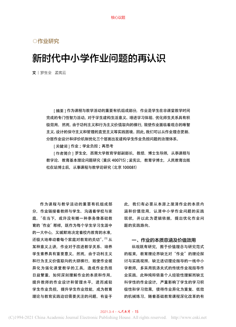 学习资料:新时代中小学作业问题的再认识_罗生全